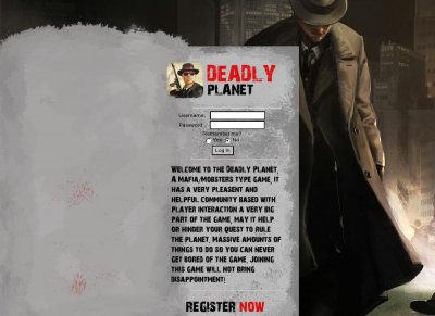 Welcome to the Deadly Planet, A Mafia/Mobsters type game, it has a very pleasent and helpful community based with player interaction a very big part of the game, may it help or hinder your quest to rule the planet. Massive amounts of things to do so you can never get bored of the game. Joining this game will not bring disappointment!