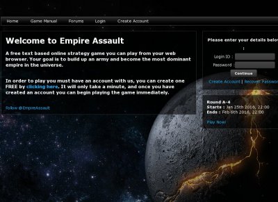 Empire Assault is a free text based online strategy game. Your goal is to build up an army and become the most dominant empire in the universe.